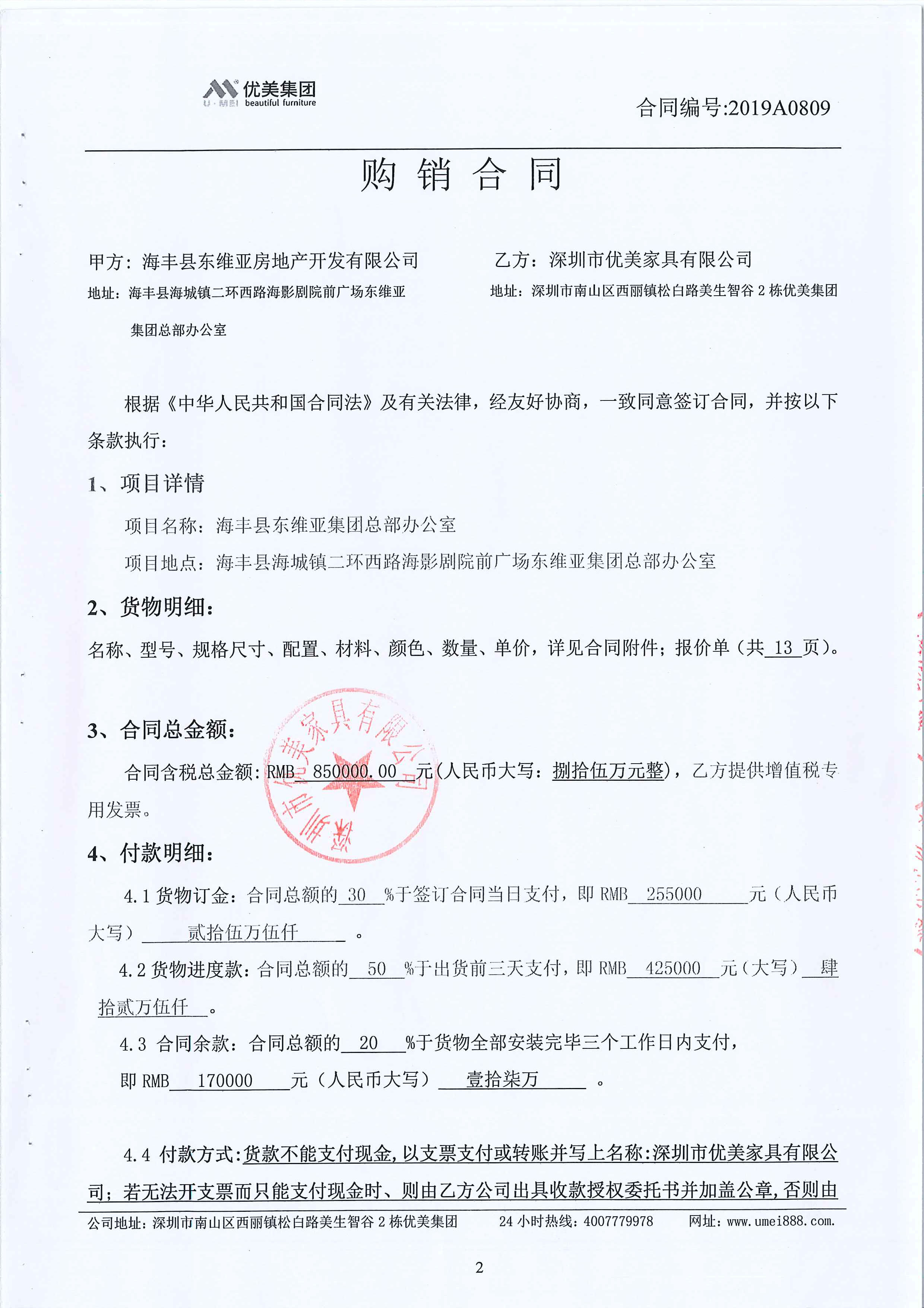 優(yōu)美家具簽約:海豐縣東維亞房地產(chǎn)開發(fā)有限公司85萬項(xiàng)目